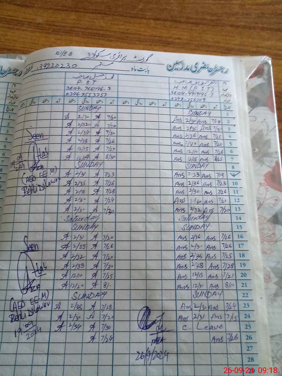 | Name: AN**** AL**** Designation: (School Headmaster's/Headmistress's) PST Phone/Cell Number: 03**** |