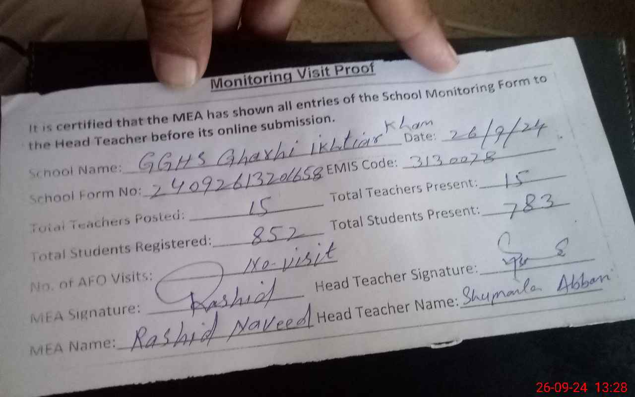 | EMIS Code: 31310078 | Name of School: GGHS GHARHI IKHTIAR KHAN | |||