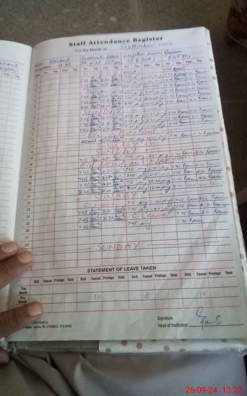 | Name: Ay**** Mu**** Designation: (School Headmaster's/Headmistress's) Head Phone/Cell Number: 03**** |