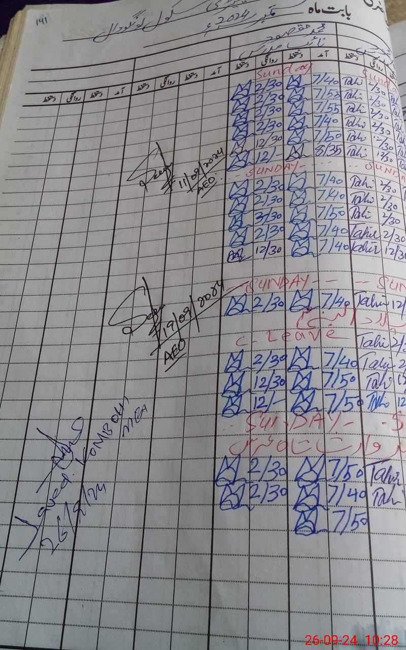 | CNIC | Full Name | Designation | R/C | Absence During Last Calender Month |