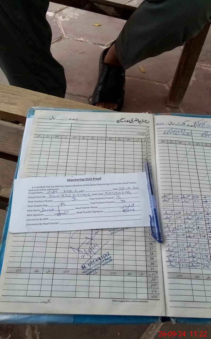 | Attendance Register | Head Teacher | MEA with School | Visit Proof |