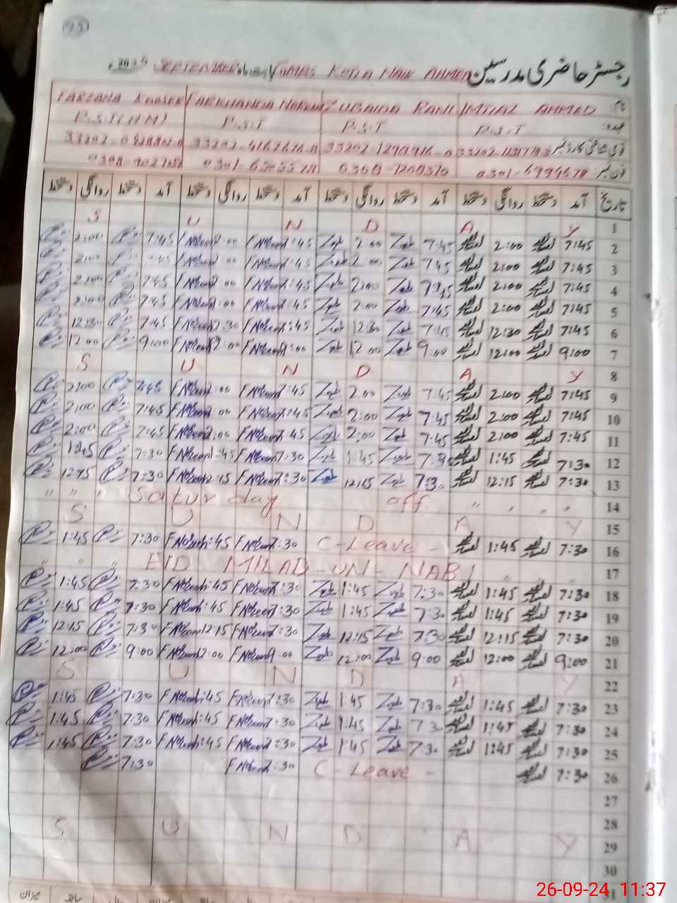 | CNIC | Full Name | Designation | R/C | Absence During Last Calender Month |