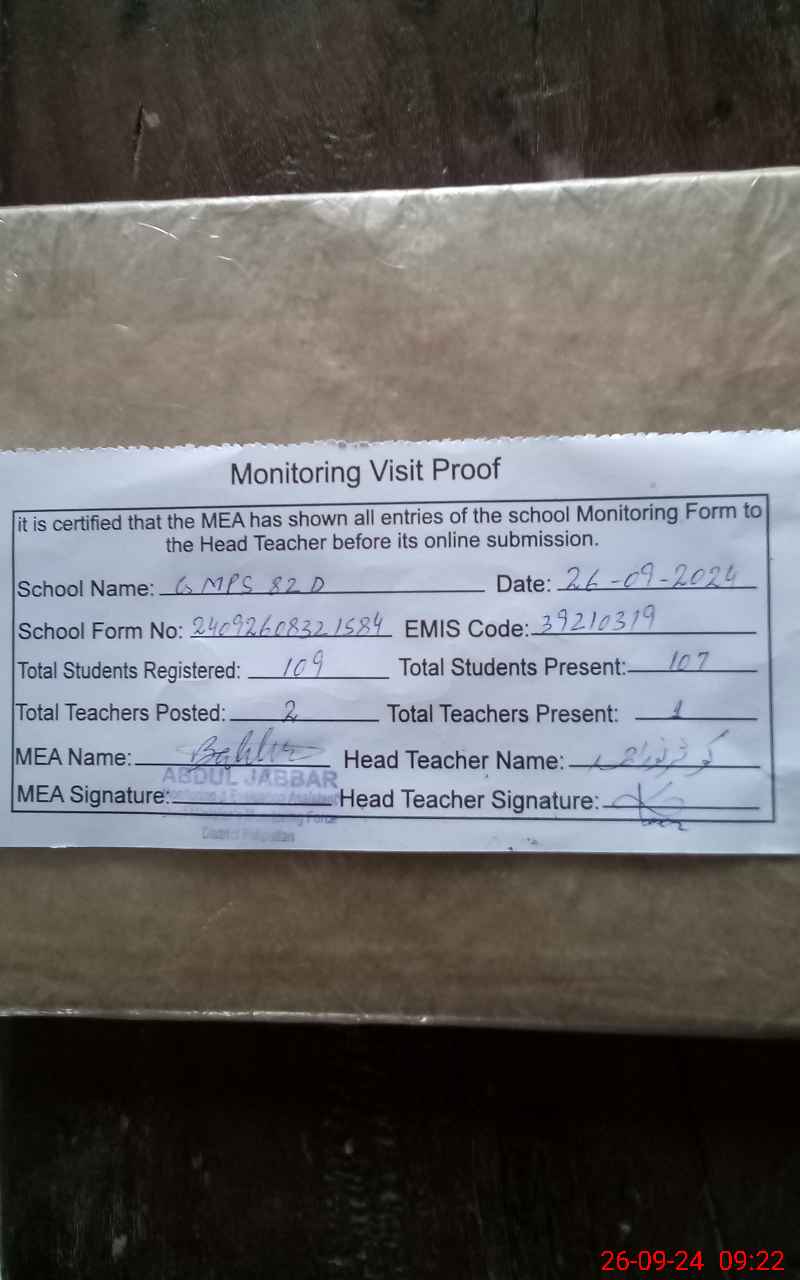 | EMIS Code: 39210319 | Name of School: GMPS 82 D | |||