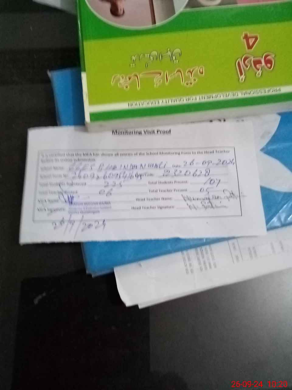 | Attendance Register | Head Teacher | MEA with School | Visit Proof |