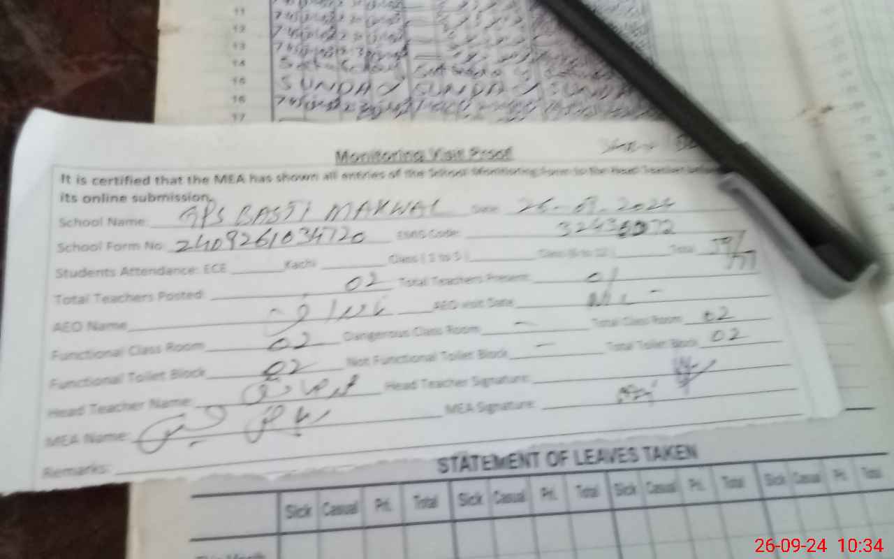 | Attendance Register | Head Teacher | MEA with School | Visit Proof |