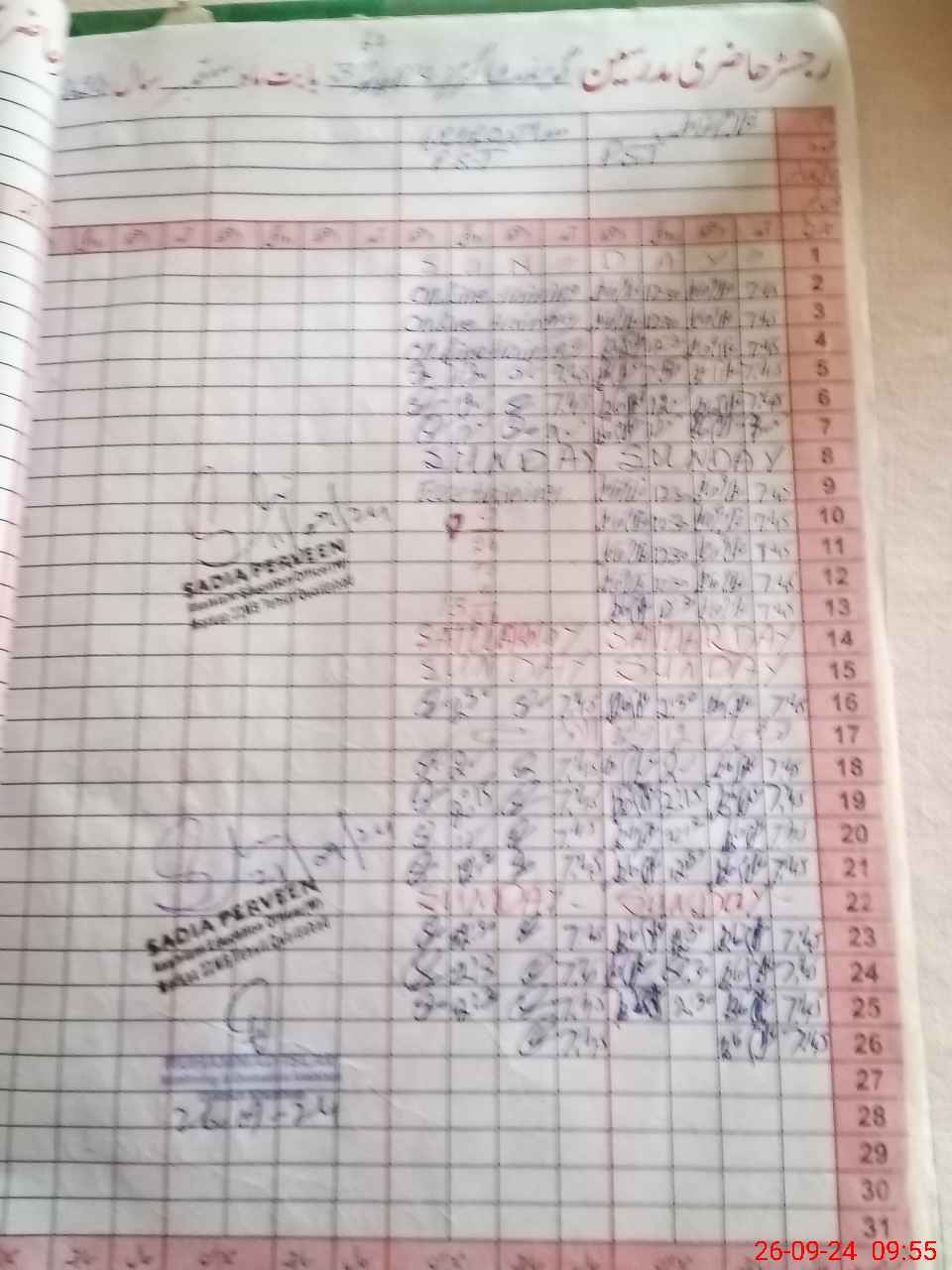 | CNIC | Full Name | Designation | R/C | Absence During Last Calender Month |