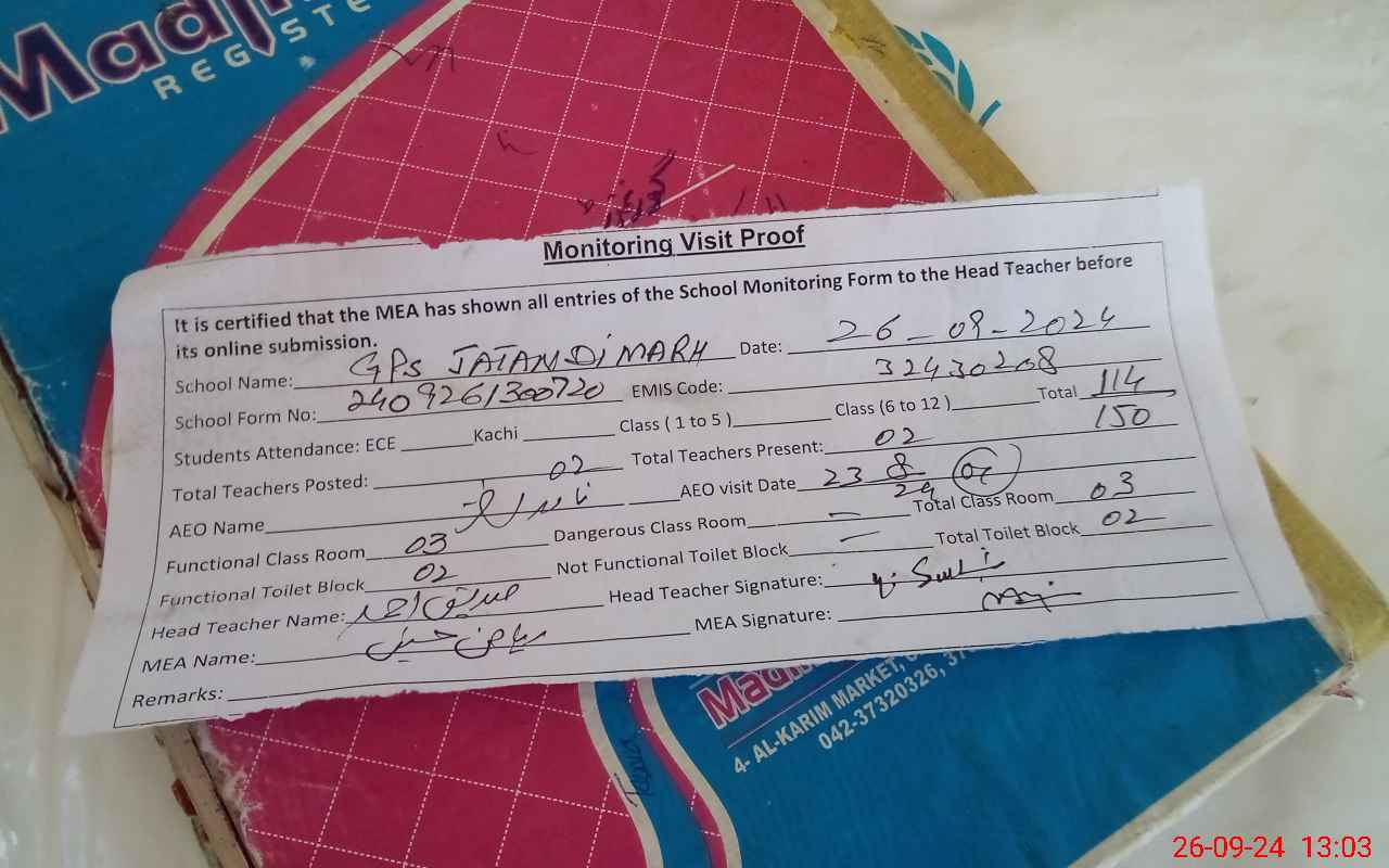 | EMIS Code: 32430208 | Name of School: GPS JATAN DI MAIRH | |||