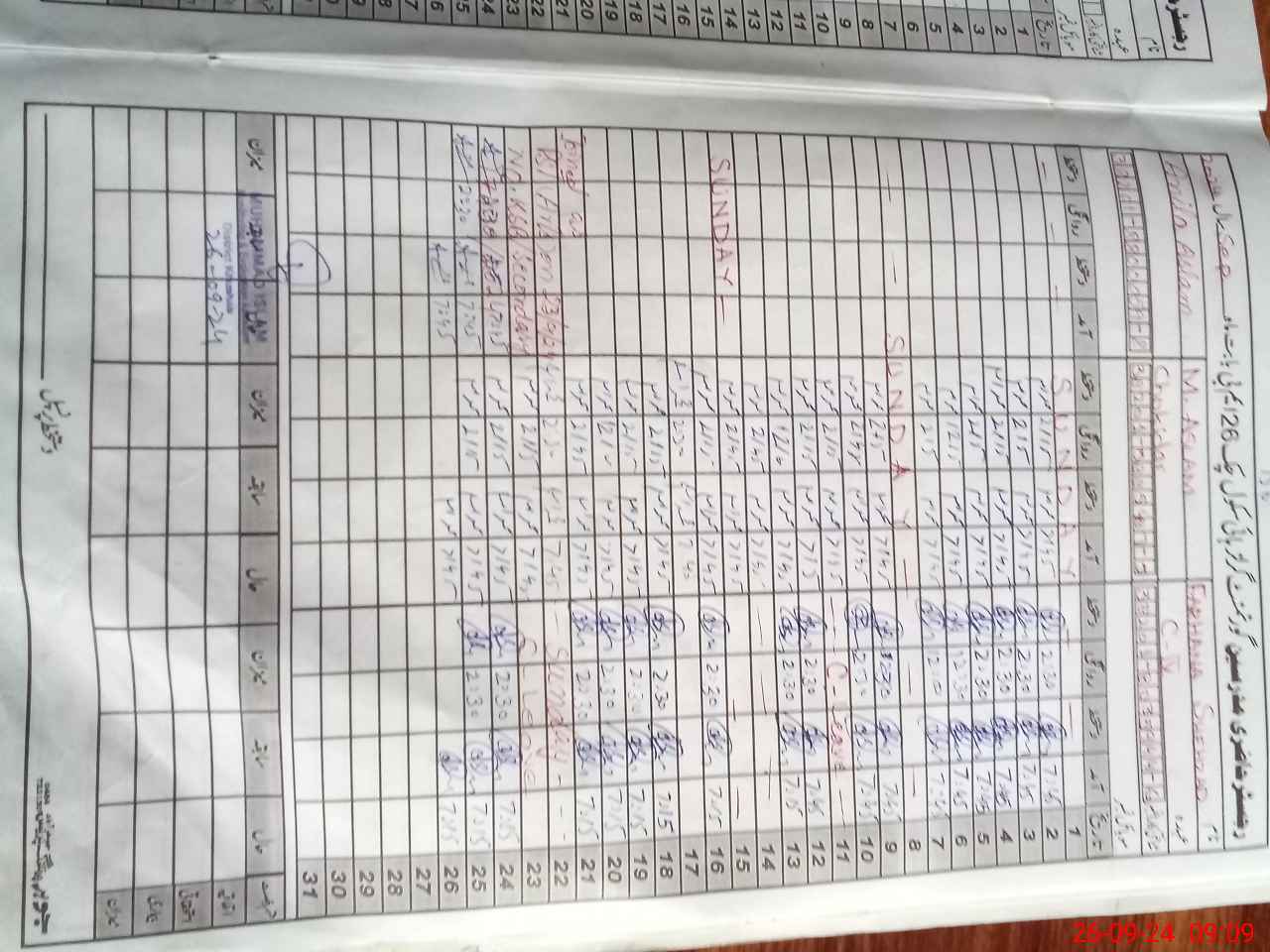 | CNIC | Full Name | Designation | R/C | Absence During Last Calender Month |