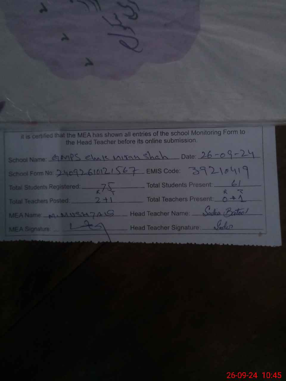 | EMIS Code: 39210419 | Name of School: GMPS CHAK MIRAN SHAH | |||