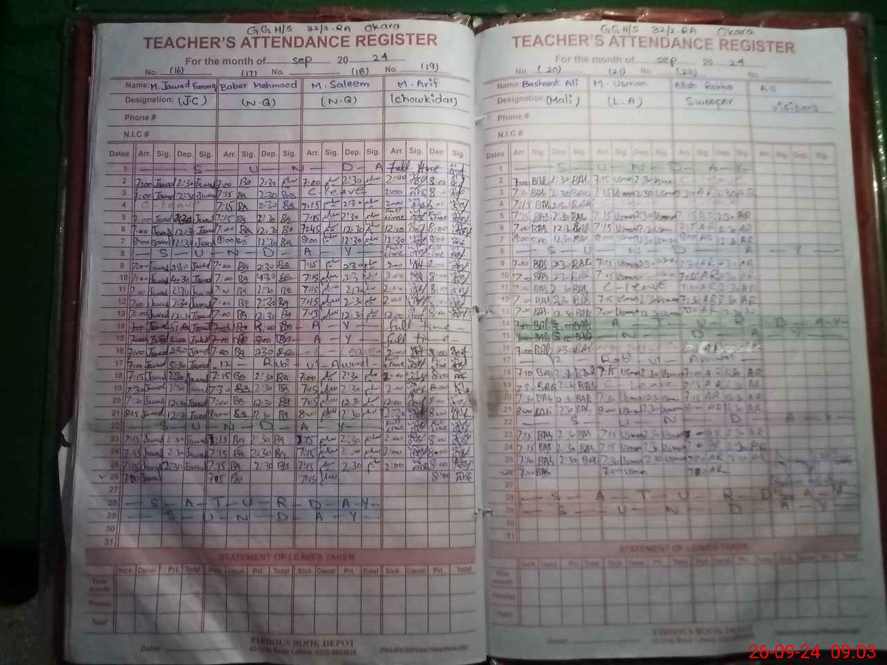 | CNIC | Full Name | Designation | R/C | Absence During Last Calender Month |