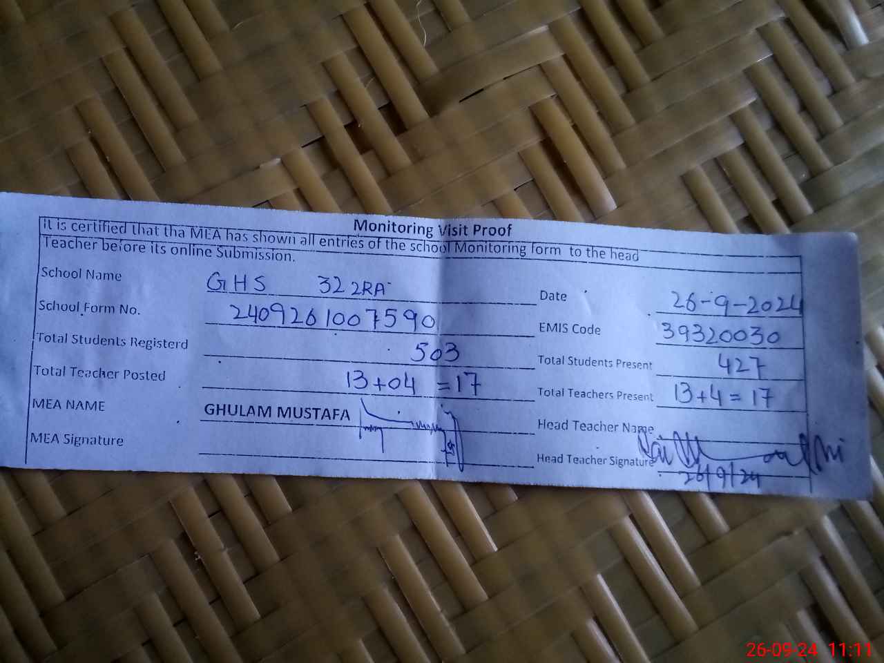 | EMIS Code: 39320030 | Name of School: GHS 32/2.R-A | |||