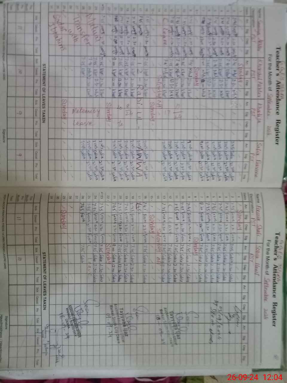 | Remarks (Use Separate Page if Required): It is pertinent to mention here that a teacher named Samiya Akhtar posted out on mutually with Sadaf Ibrahim PST who has already been reported on 24 Sep 2024 | |||||