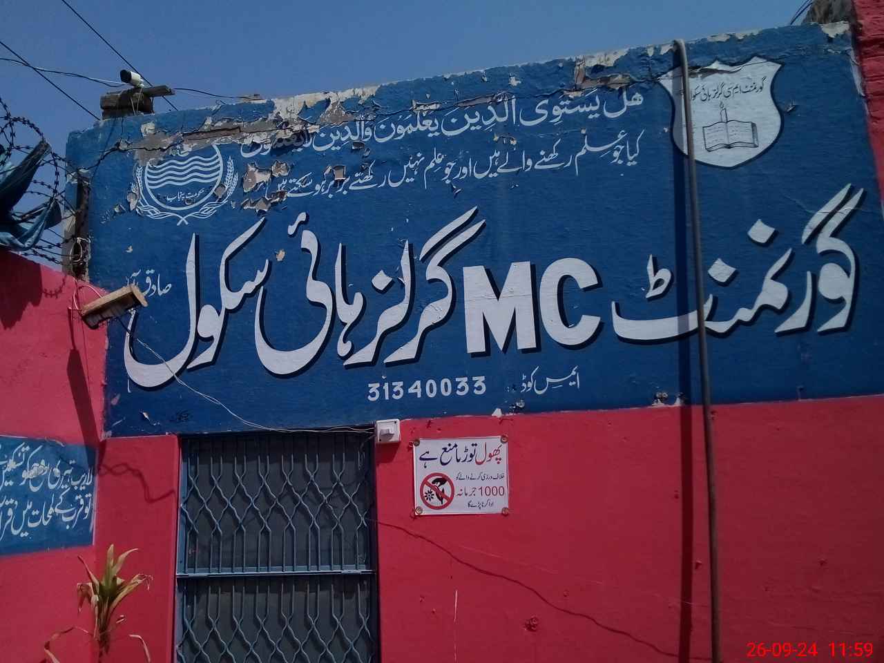 | EMIS Code: 31340033 | Name of School: GGHS MC SADIQ ABAD | |||