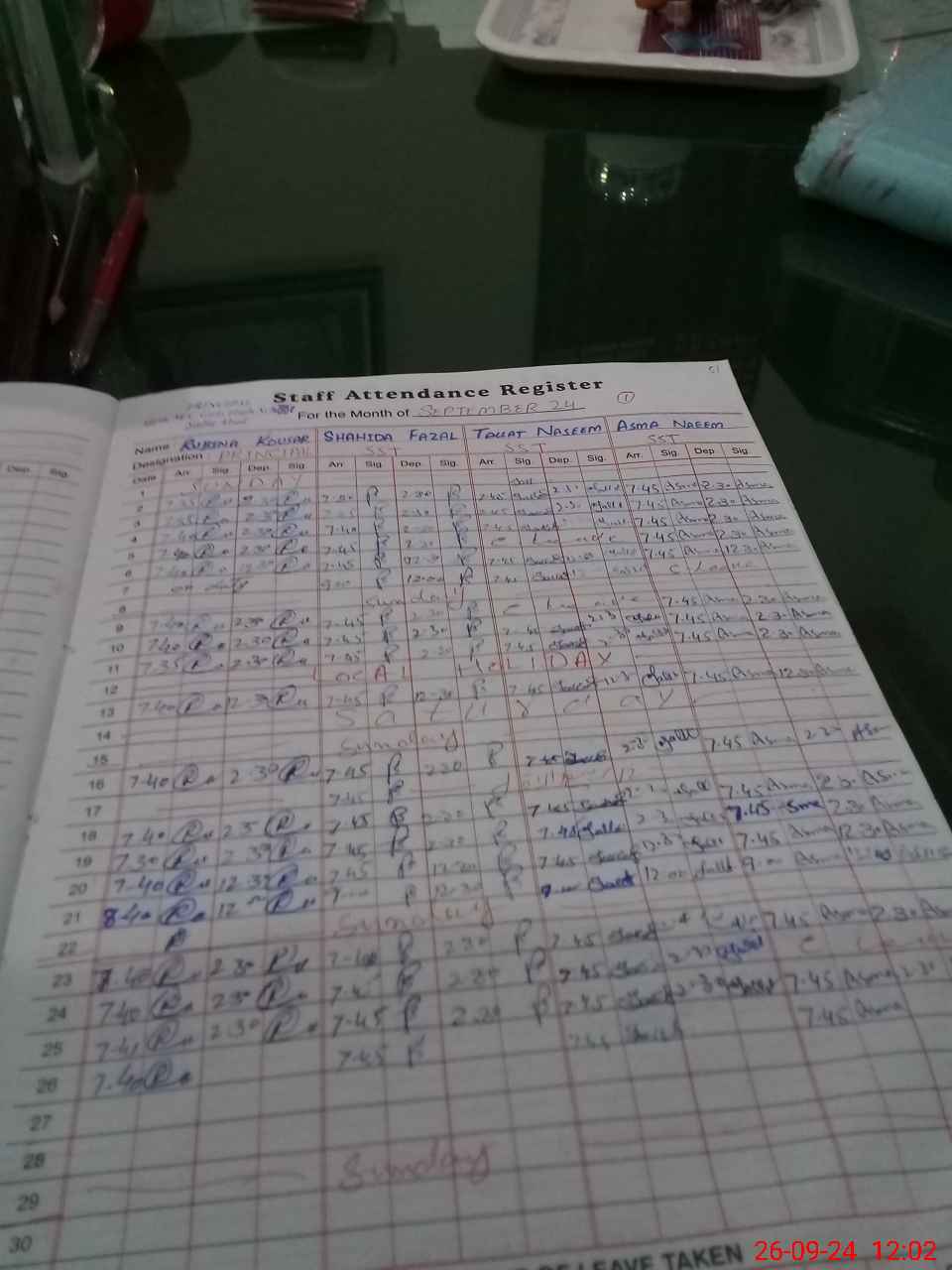 | Leave | Duty | Absent | Maternity | Medical | Ex- Pak |