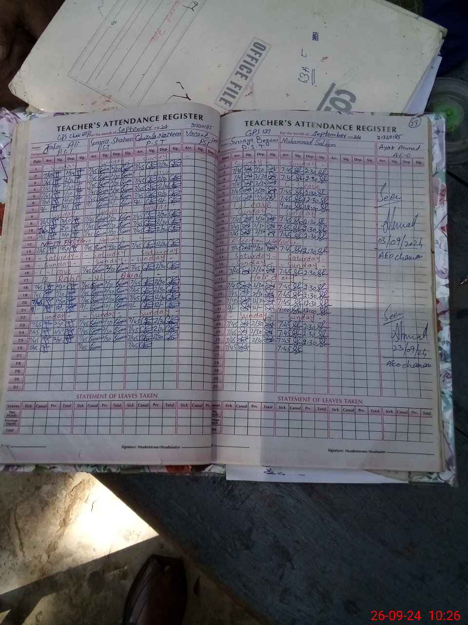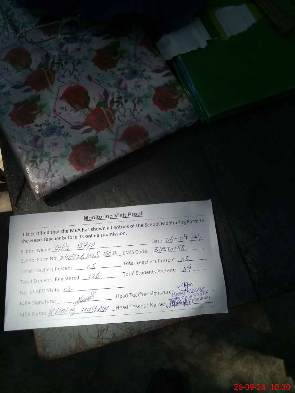 | Attendance Register | Head Teacher | MEA with School | Visit Proof |