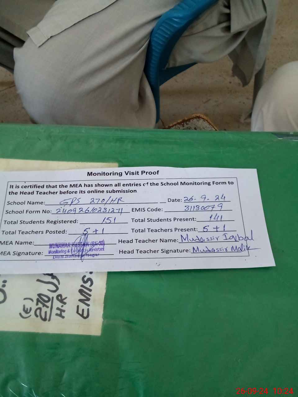 | Certified that this School was Inspected by the Undersigned MEA/DMO Today and the Information Stated Above is as Per Record. | |||||