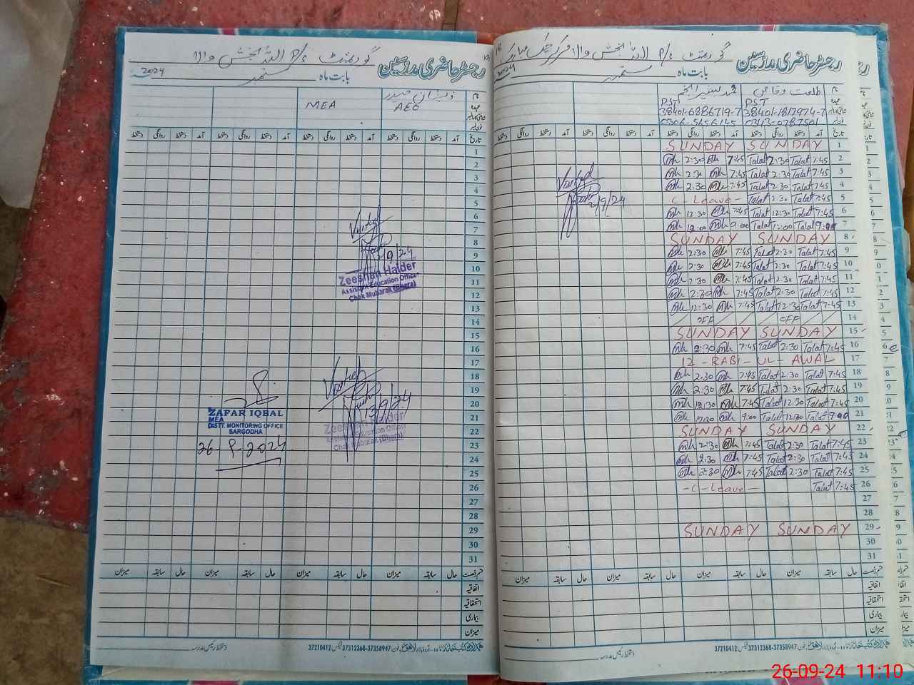 | Monitoring Date: 26-09-2024 | Start Time: 26-09-2024 10:33 AM | End Time: 26-09-2024 11:12 AM | Name of MEA: ZA**** IQ**** | |