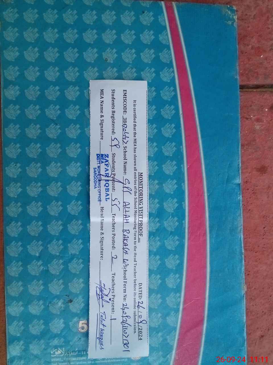 | EMIS Code: 38470447 | Name of School: GPS ALLAH BAKHSH WALA | |||