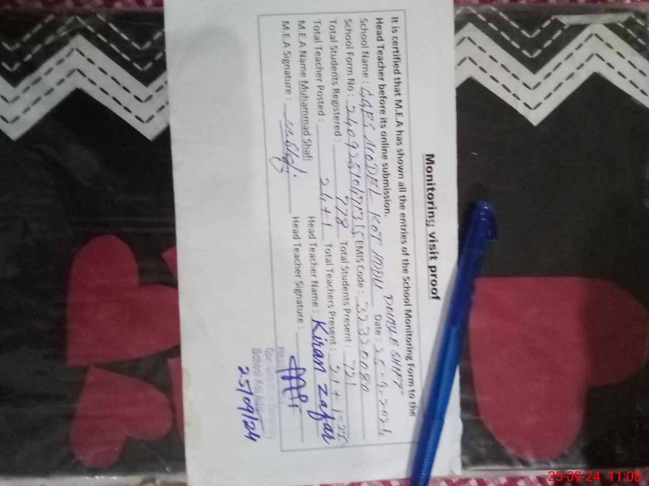 | Certified that this School was Inspected by the Undersigned MEA/DMO Today and the Information Stated Above is as Per Record. | |||||