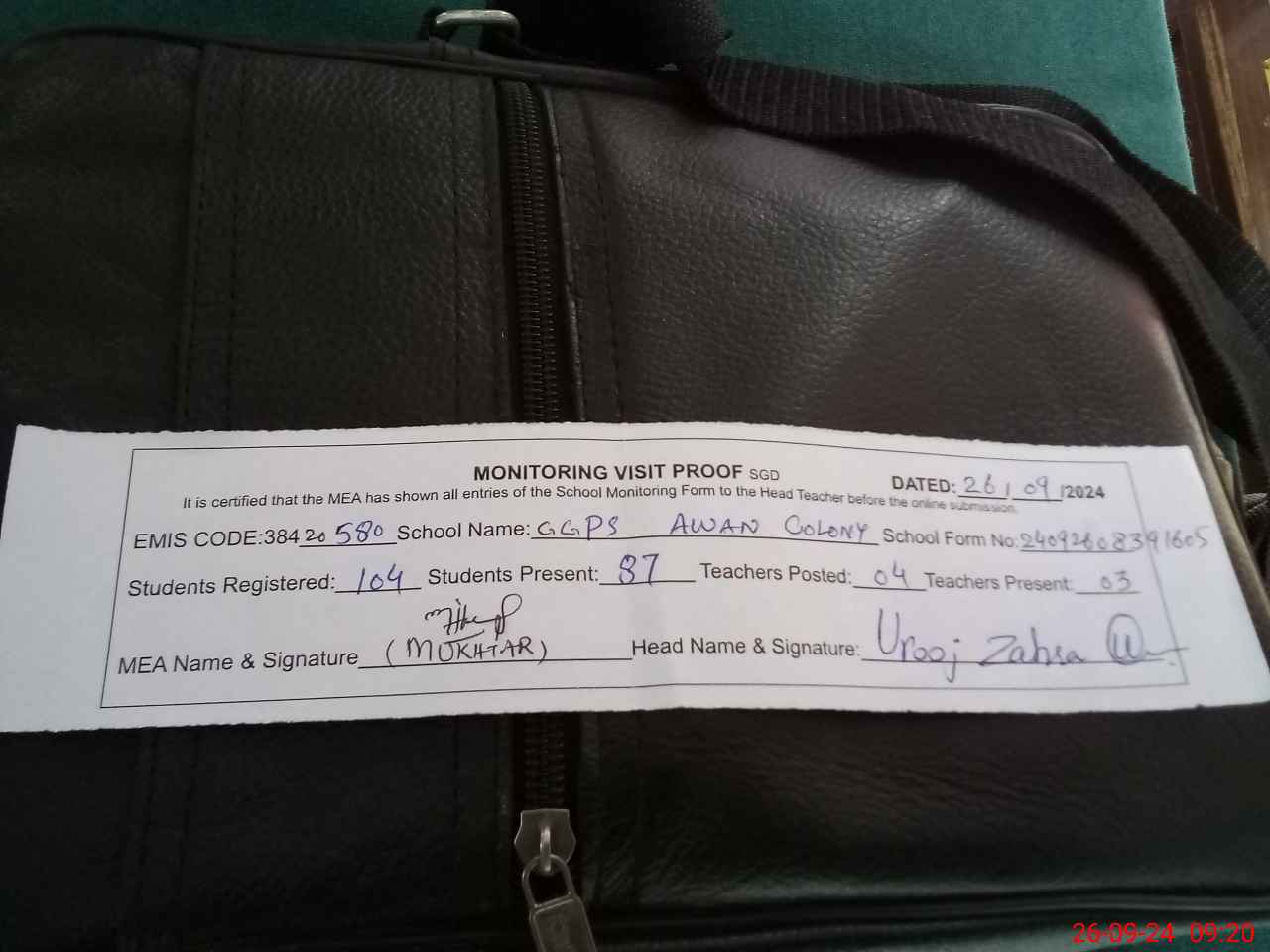 | EMIS Code: 38420580 | Name of School: GGPS AWAN COLONY | |||