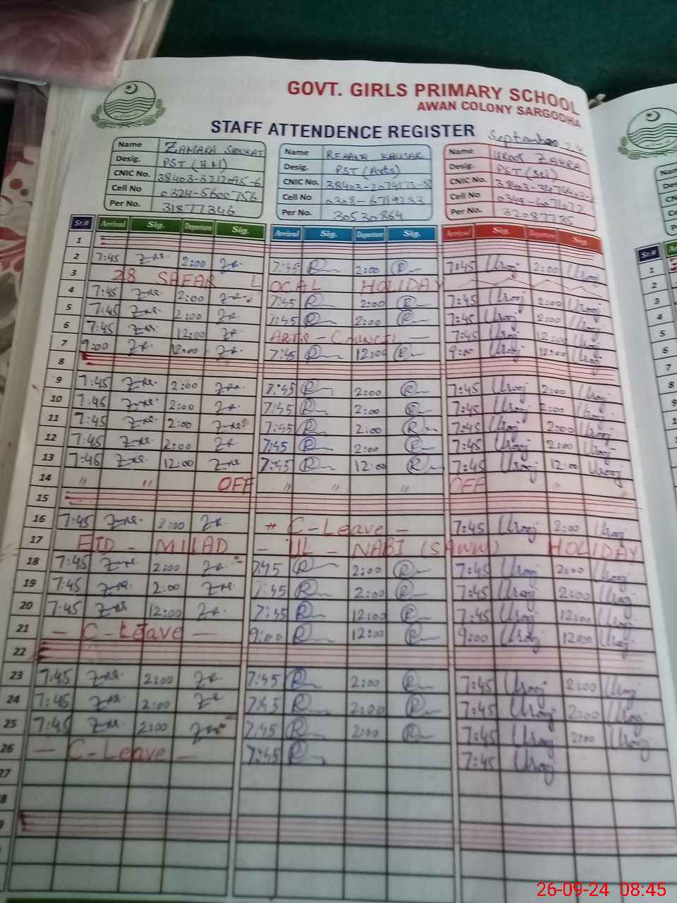 | Name: ZA**** SH**** Designation: (School Headmaster's/Headmistress's) PST Phone/Cell Number: 03**** |