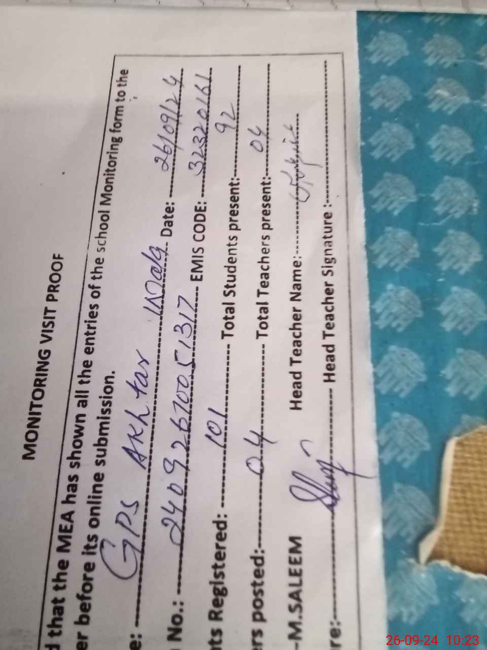 | EMIS Code: 32320161 | Name of School: GPS AKHTER WALA | |||