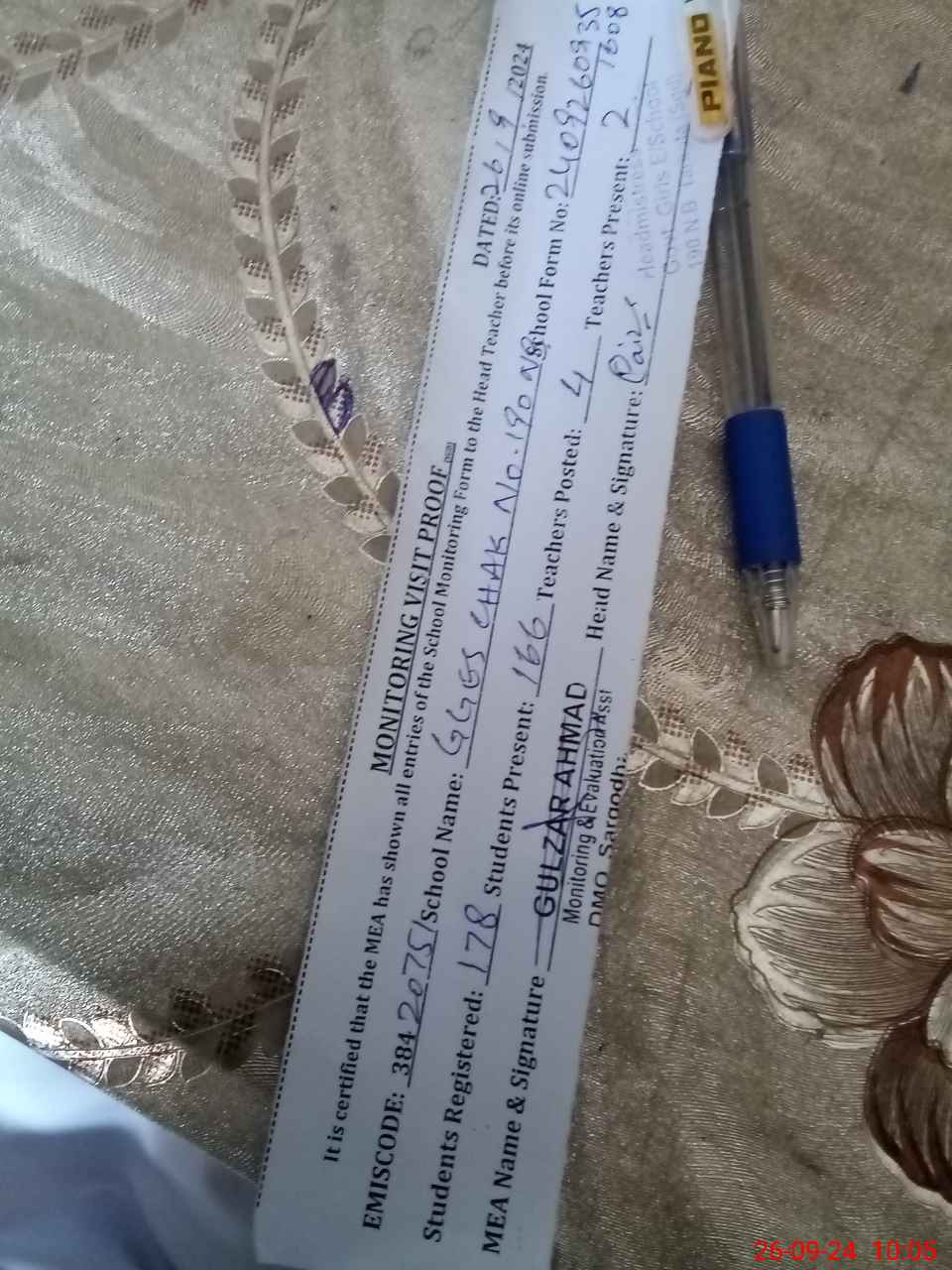 | EMIS Code: 38420751 | Name of School: GGES CHAK NO.190 NB TARKOTA | |||