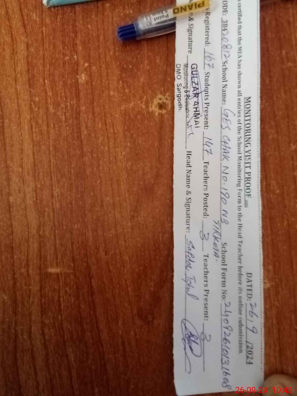 | Certified that this School was Inspected by the Undersigned MEA/DMO Today and the Information Stated Above is as Per Record. | |||||