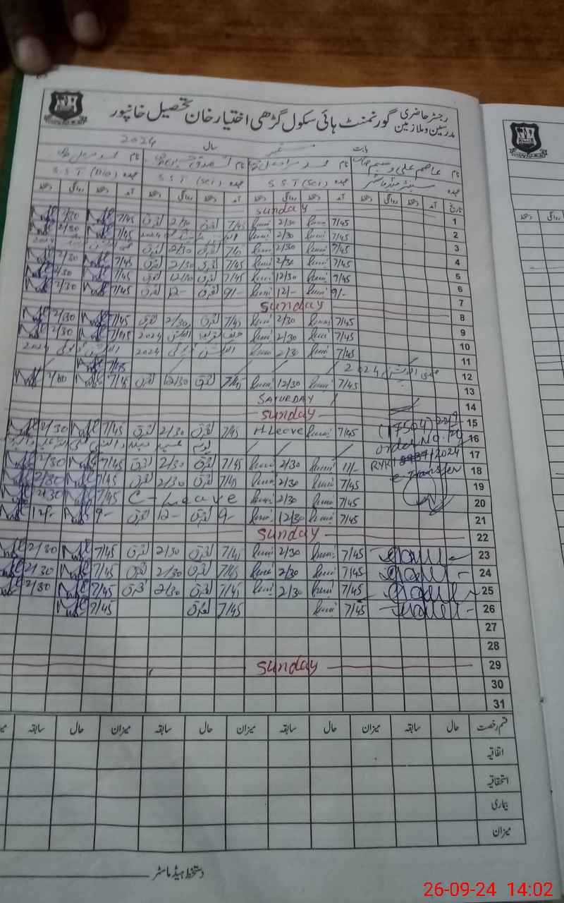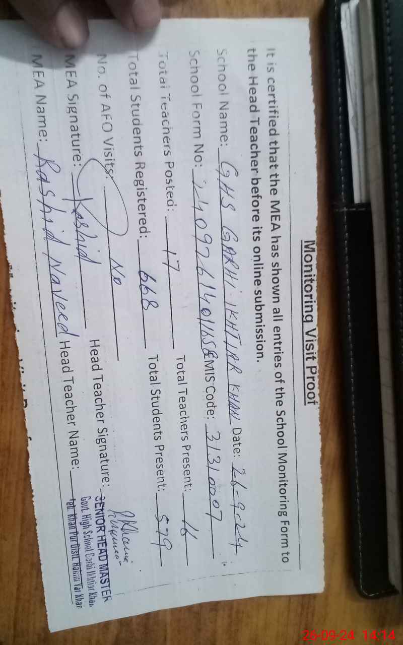 | EMIS Code: 31310007 | Name of School: GHS GARHI IKHTIAR KHAN | |||