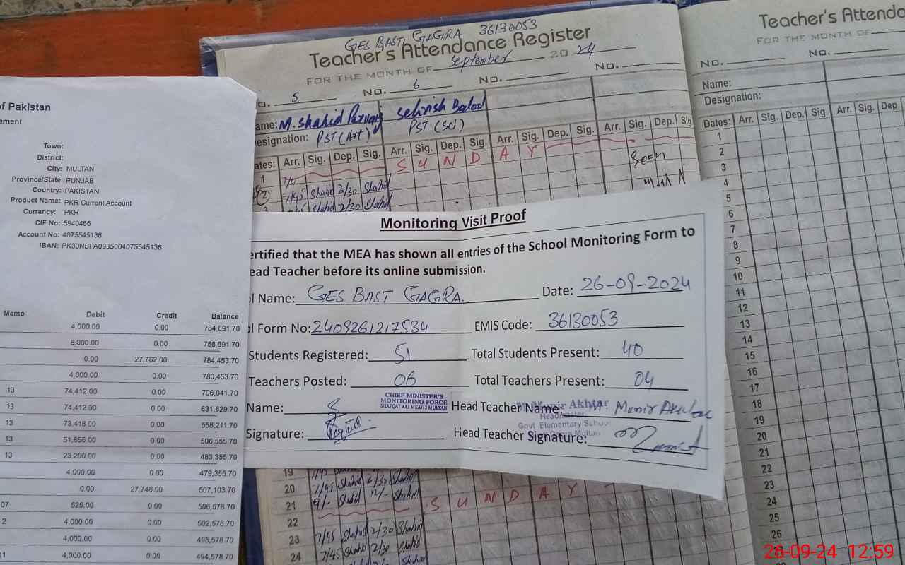 | Attendance Register | Head Teacher | MEA with School | Visit Proof |