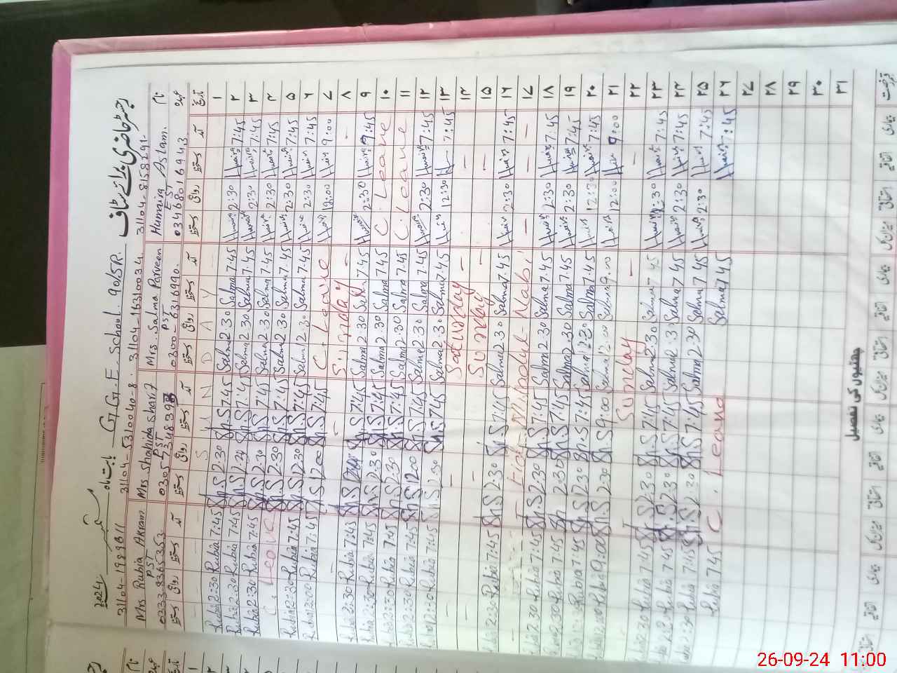 | Leave | Duty | Absent | Maternity | Medical | Ex- Pak |