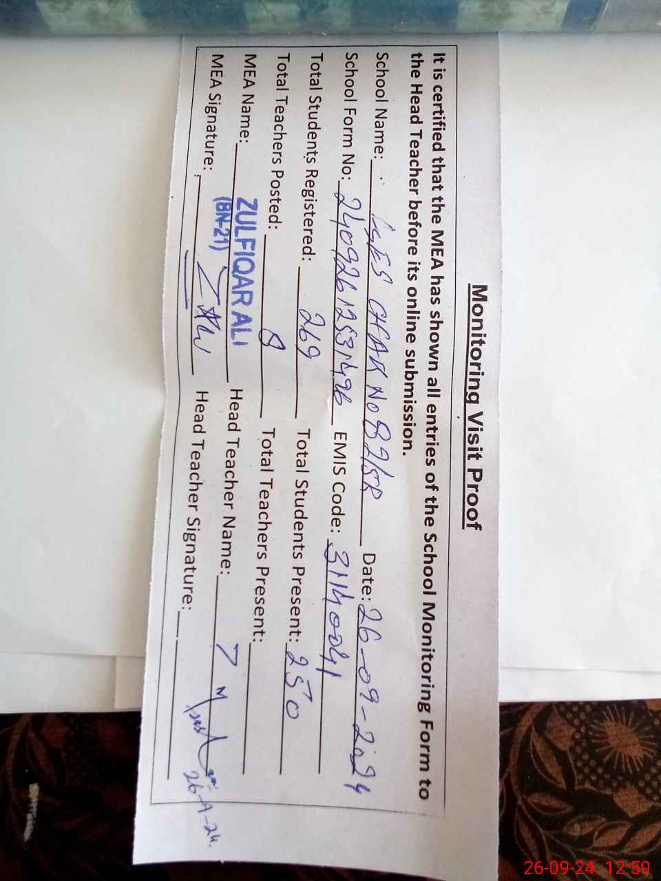 | EMIS Code: 31140041 | Name of School: GES CHAK 82/5-R | |||