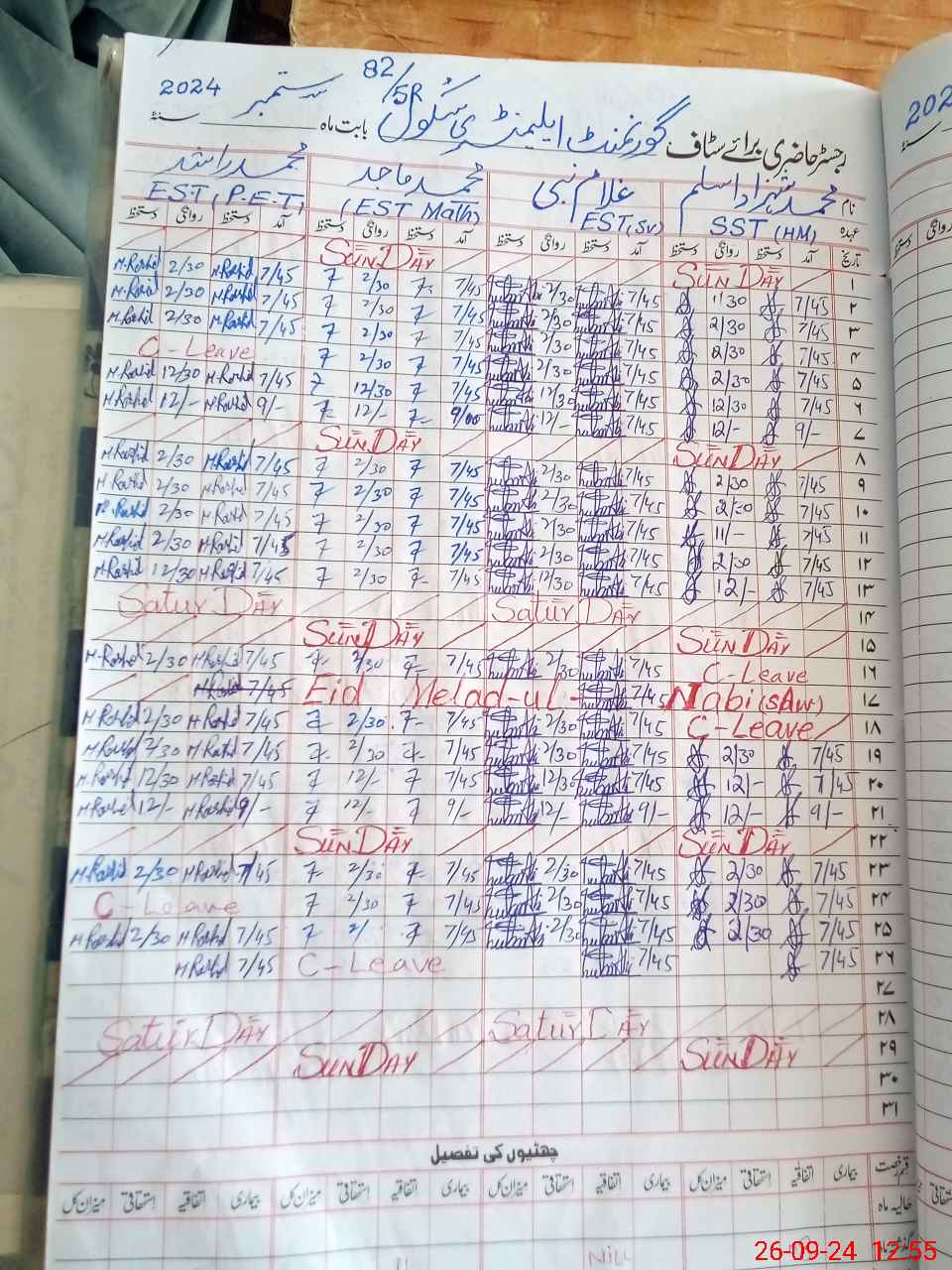 | 31**** | Mu**** Ma**** Ar**** | ESE | Contract | 0 | 0 | 0 | 0 | 0 | 0 | 0 | 0 | 0 | Absent (Un-Authorized) |