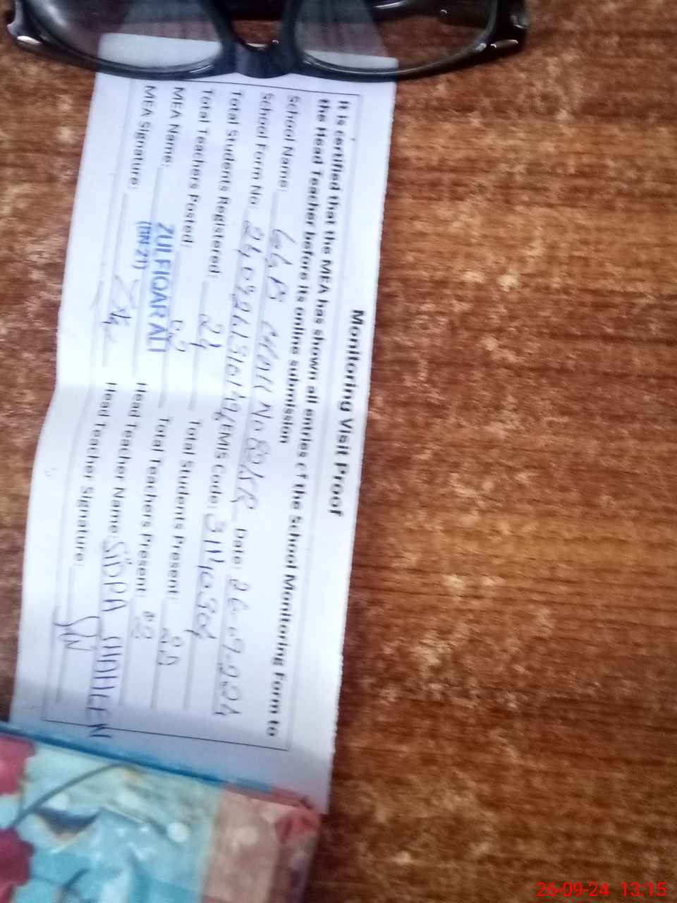 | Attendance Register | Head Teacher | MEA with School | Visit Proof |
