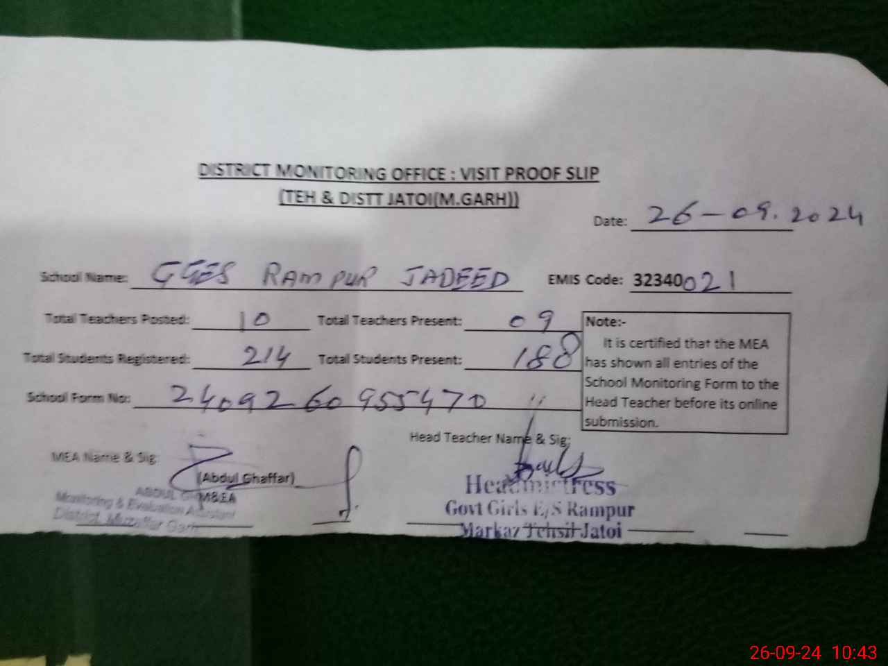 | EMIS Code: 32340021 | Name of School: GGES RAM PUR JADEED (MAHI WAL NAGAR) | |||