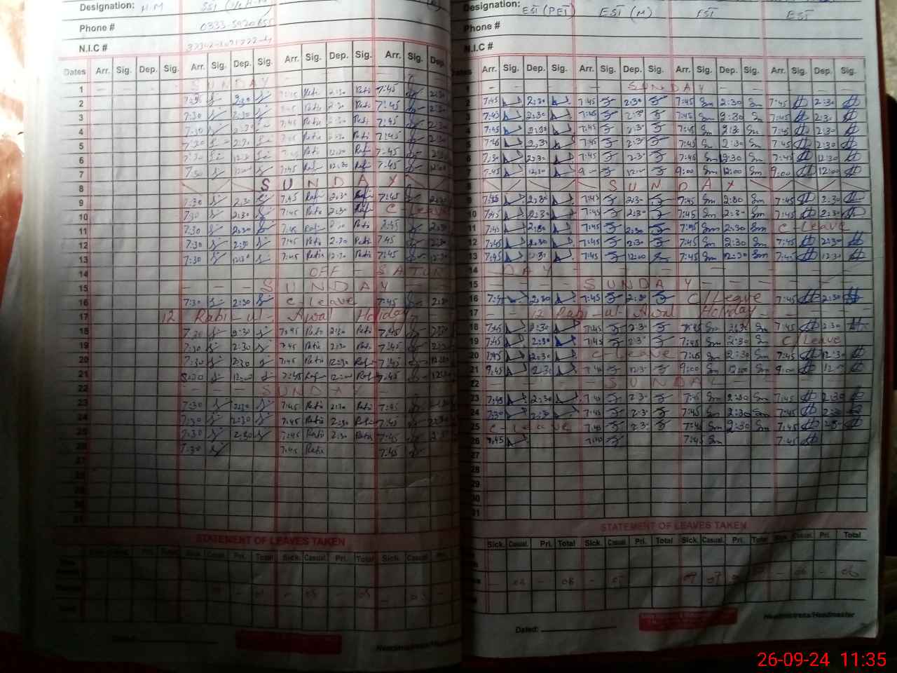 | CNIC | Full Name | Designation | R/C | Absence During Last Calender Month |