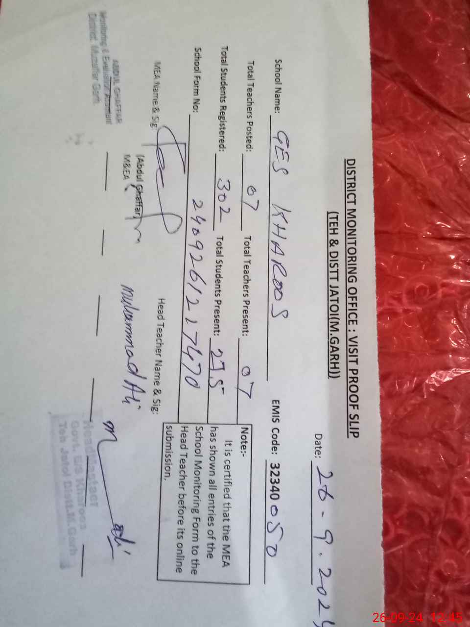 | Certified that this School was Inspected by the Undersigned MEA/DMO Today and the Information Stated Above is as Per Record. | |||||