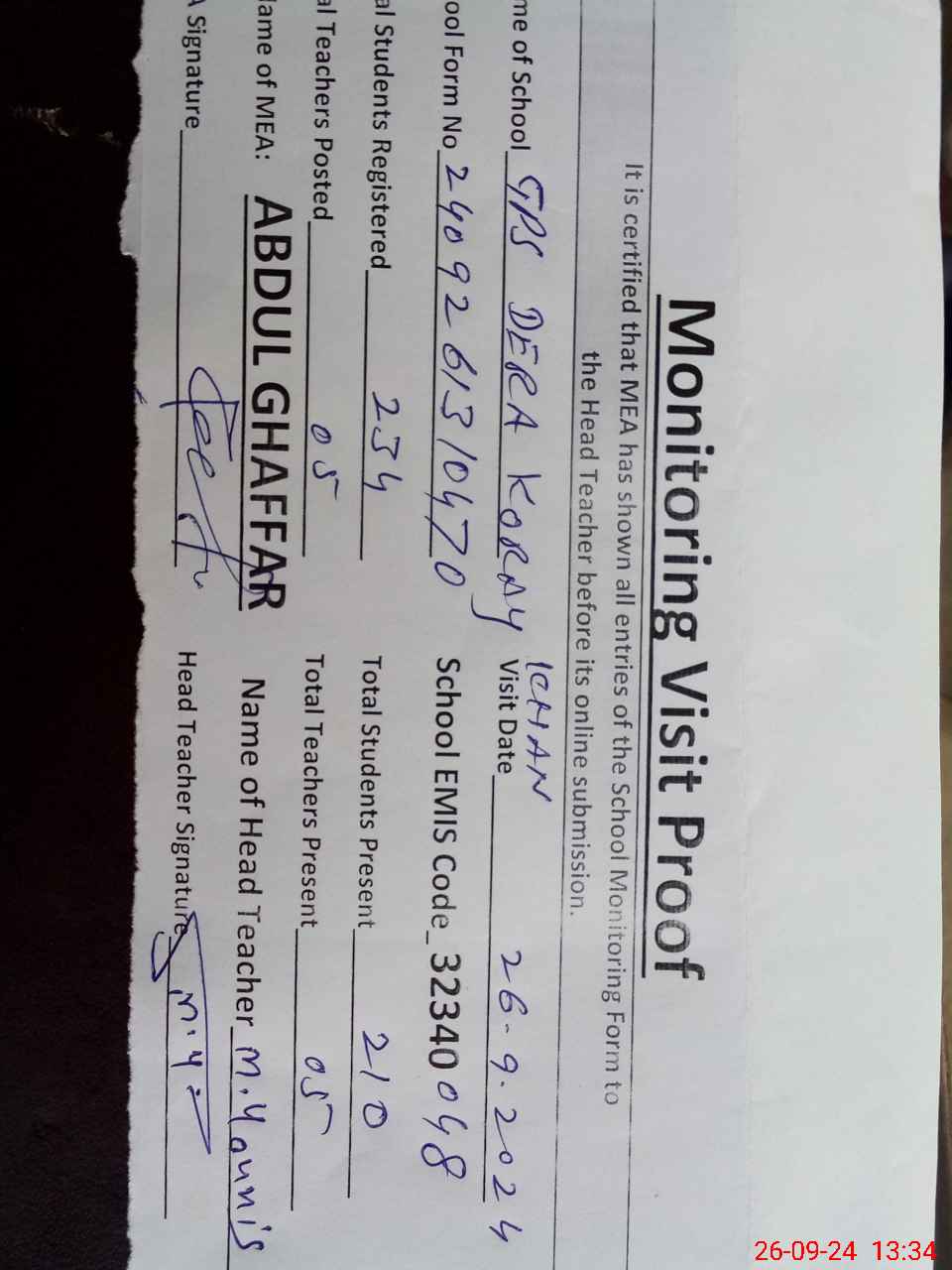 | EMIS Code: 32340048 | Name of School: GPS DERA KORAY KHAN | |||