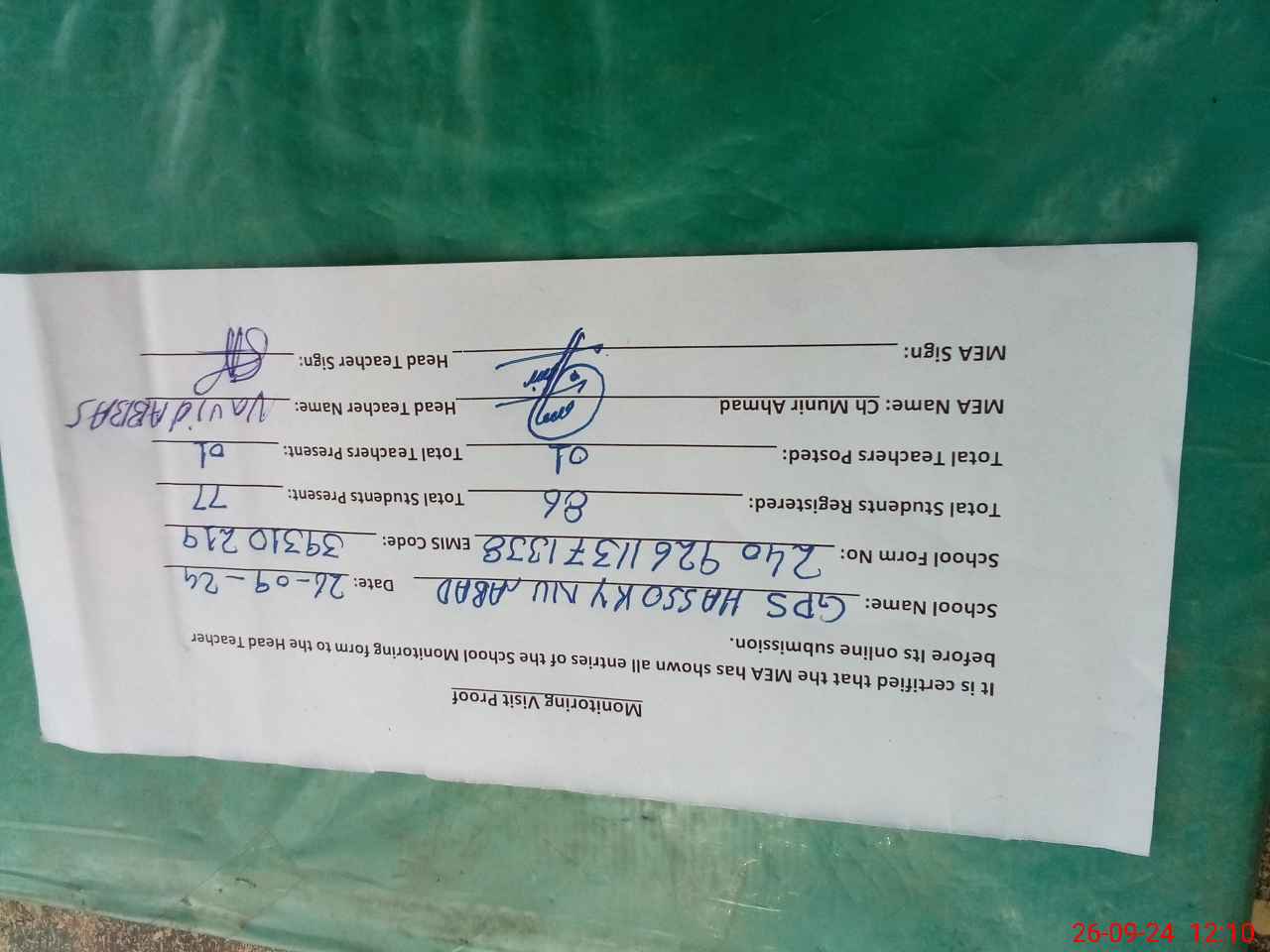 | EMIS Code: 39310219 | Name of School: GPS HASSOKAY NAOABAD | |||