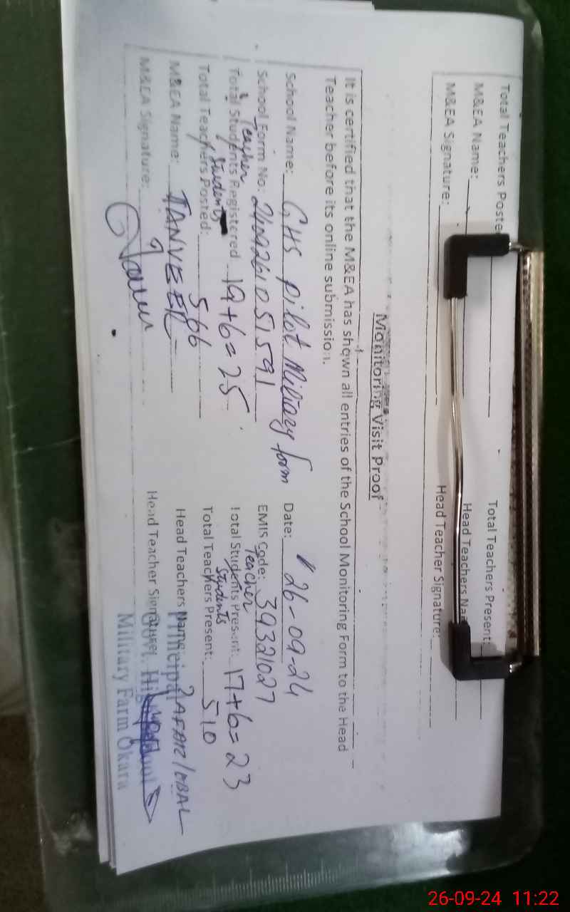 | EMIS Code: 39321027 | Name of School: GHS PILOT MILITARY FARM | |||