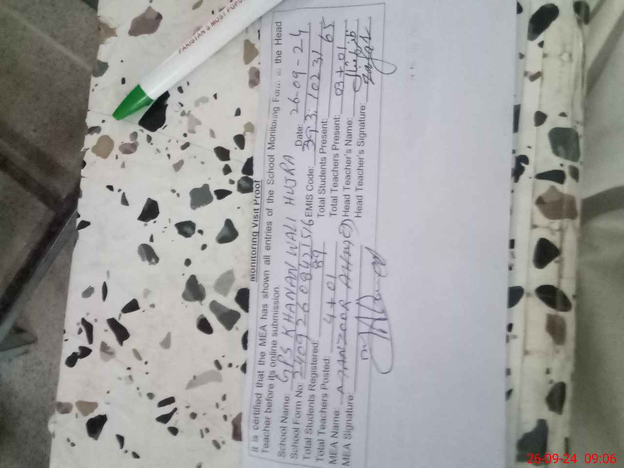 | EMIS Code: 39310231 | Name of School: GPS KHANAN WALI HUJRA | |||