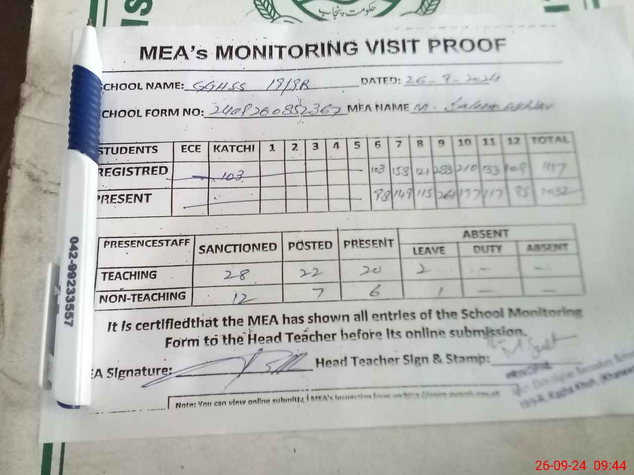 | EMIS Code: 36420054 | Name of School: GGHSS 19/9-R, KACHA KHUH | |||
