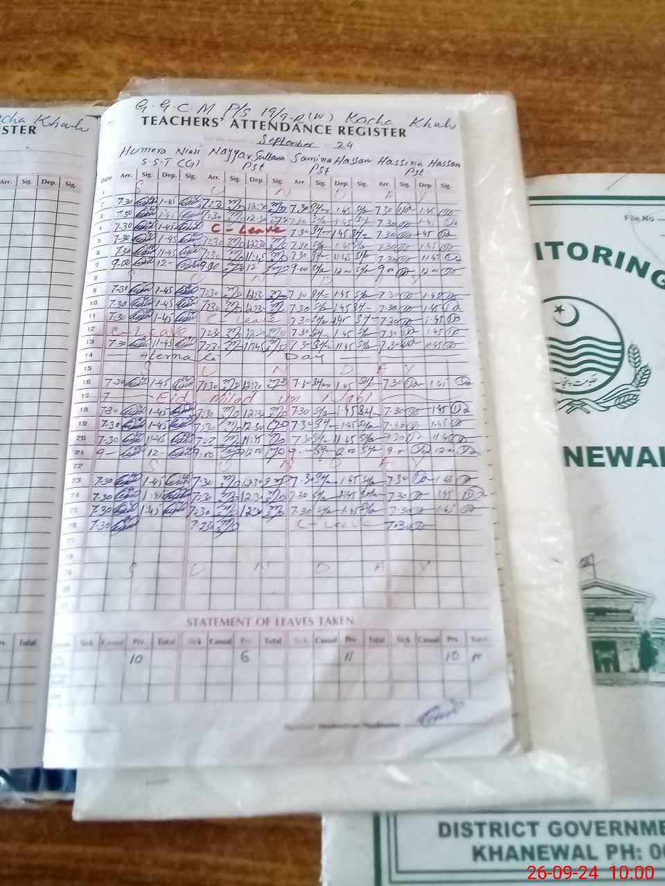 | Monitoring Date: 26-09-2024 | Start Time: 26-09-2024 09:49 AM | End Time: 26-09-2024 10:40 AM | Name of MEA: MU**** SA**** AK**** 13**** | |