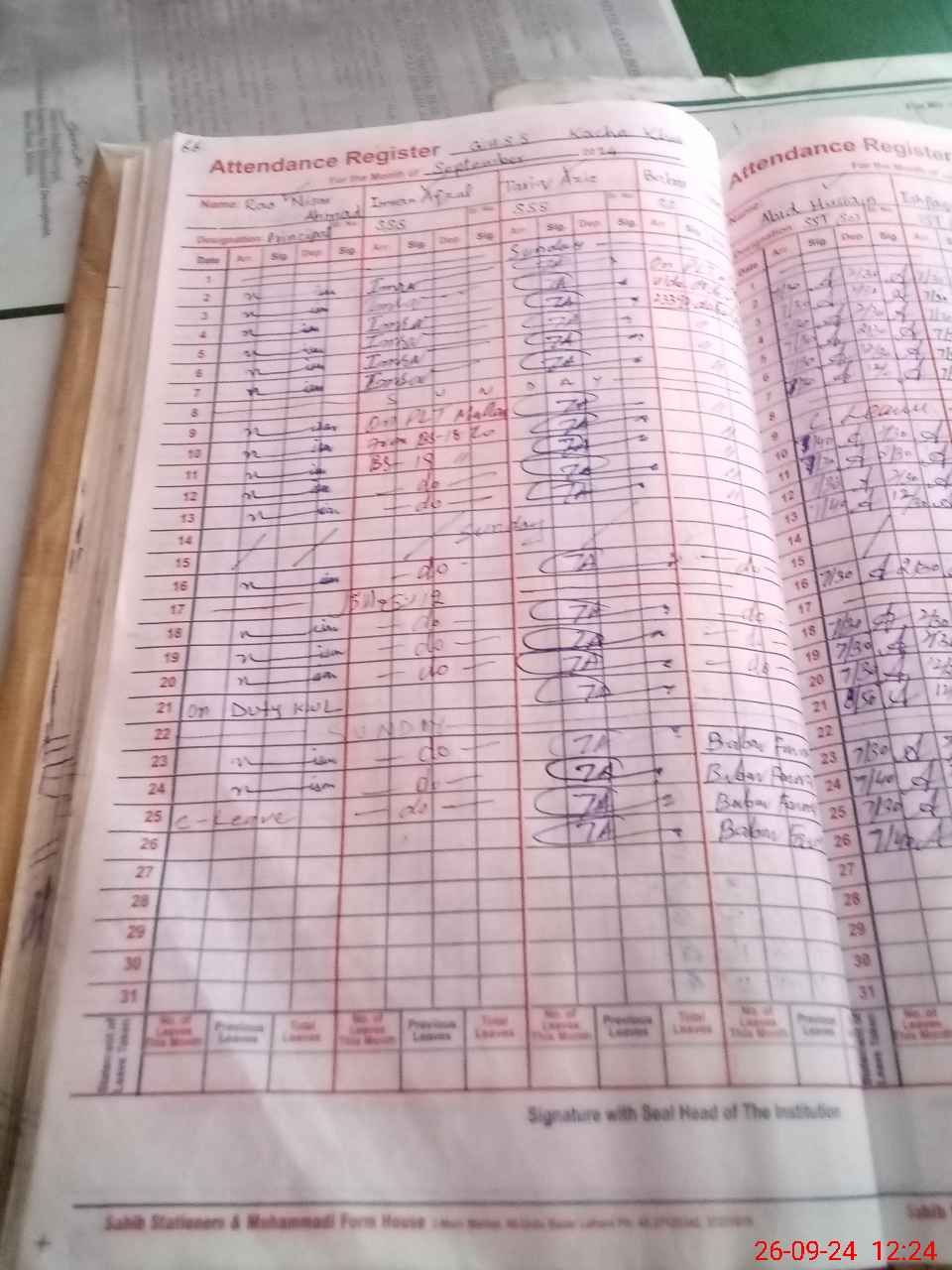 | 36**** | Ni**** Ah**** | PRINCIPAL | Regular | 0 | 0 | 0 | 0 | 0 | 0 | 0 | 0 | 0 | Casual |