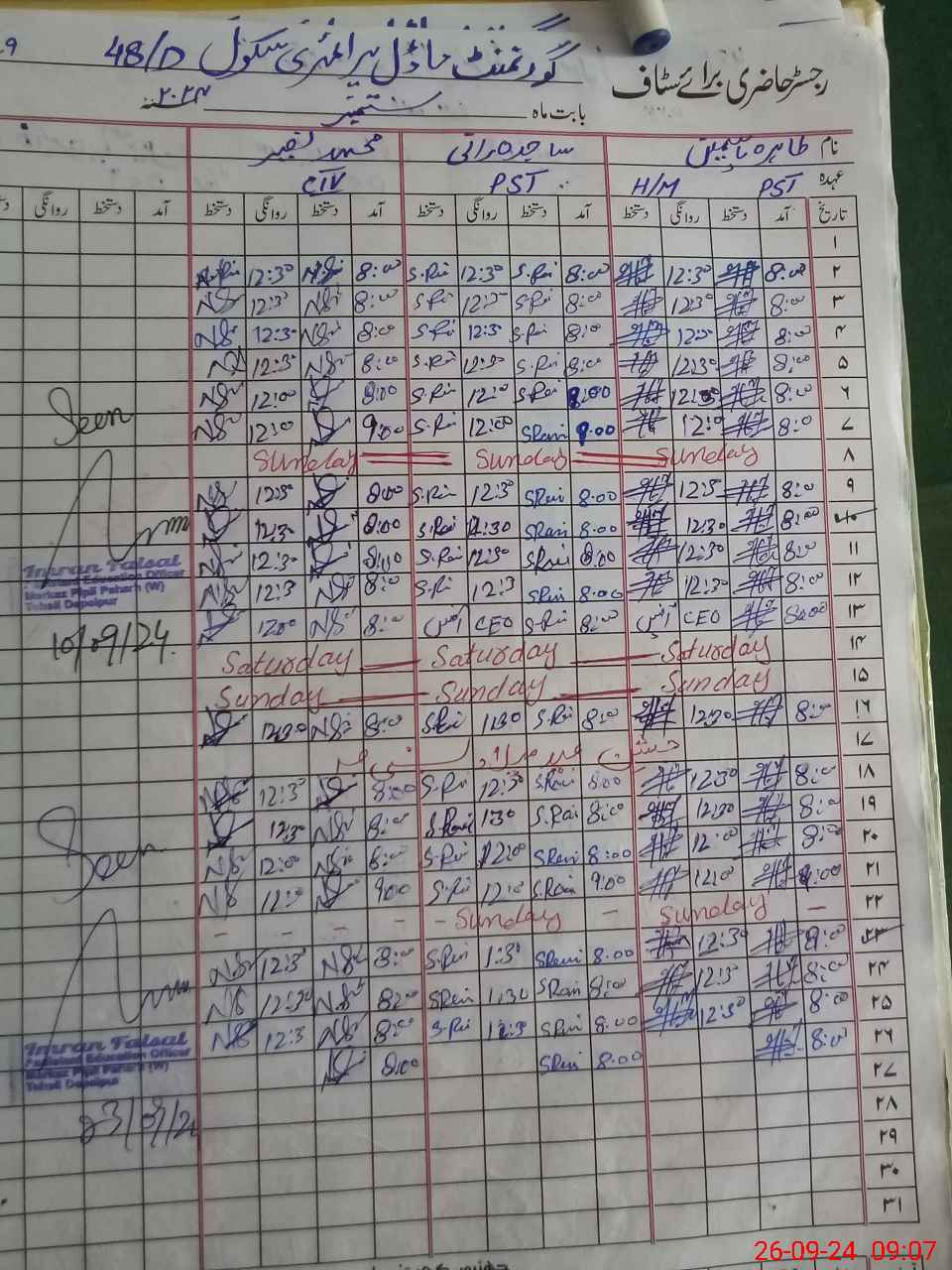 | Name: TA**** YA**** Designation: (School Headmaster's/Headmistress's) PST Phone/Cell Number: 03**** |