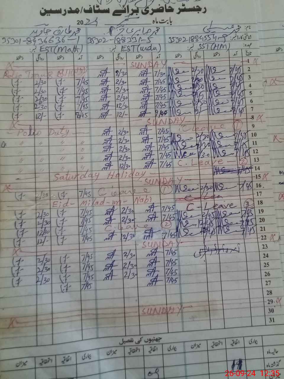| Name: MU**** Ri**** Ja**** Designation: (School Headmaster's/Headmistress's) SST Phone/Cell Number: 03**** |