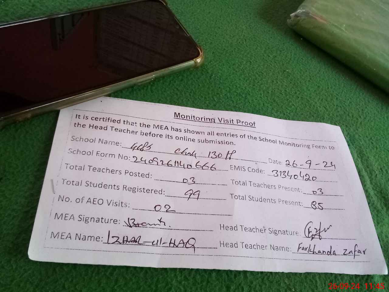 | Name: Fa**** Za**** Designation: (School Headmaster's/Headmistress's) PST Phone/Cell Number: 03**** |