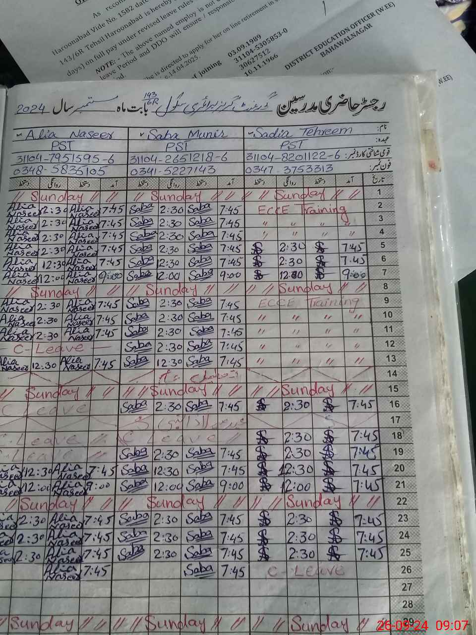 | Name: SA**** TA**** Designation: (School Headmaster's/Headmistress's) PST Phone/Cell Number: 03**** |