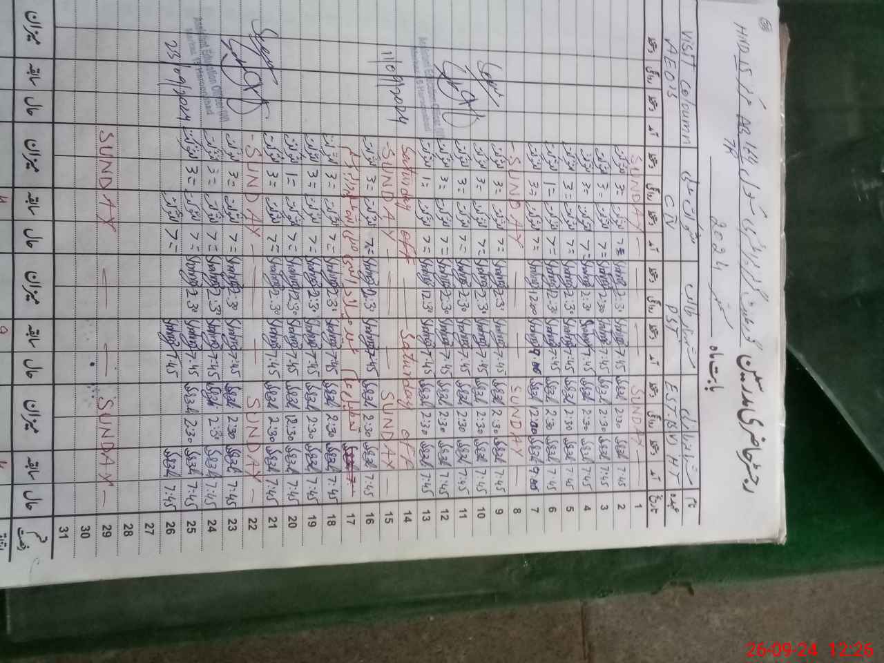 | CNIC | Full Name | Designation | R/C | Absence During Last Calender Month |
