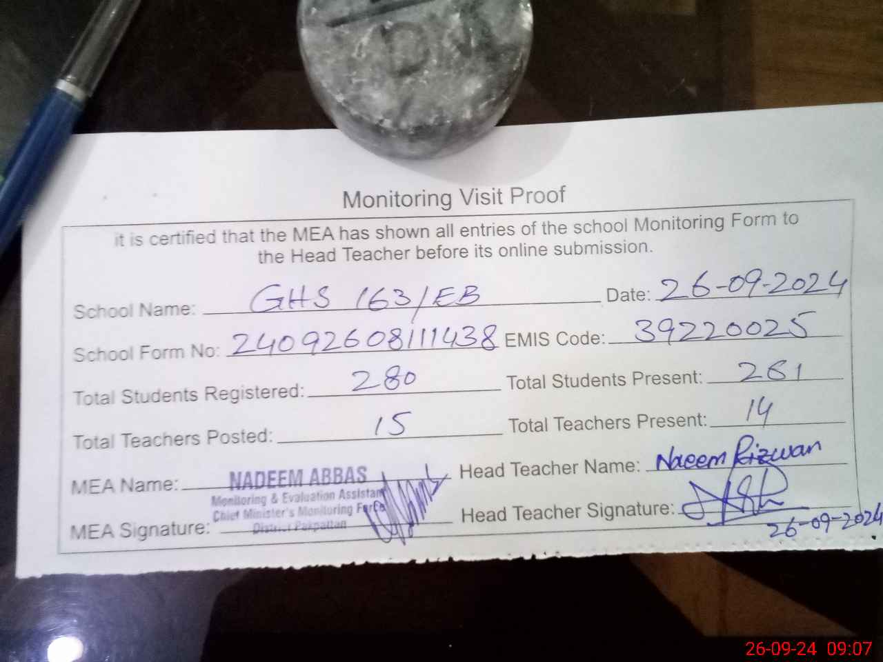 | EMIS Code: 39220025 | Name of School: GHS 163/EB | |||